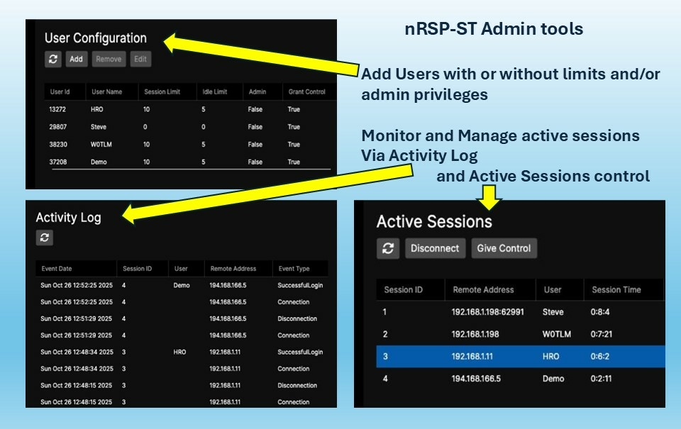 SDRplay has added rig control to their multiplatform SDRconnect software for Windows, MacOS, Linux and Raspberry Pi. As shown in the picture, they have also added features to the nRSP-ST administrator tool which now gives a lot more visibility and control over who you authorise to share your nRSP-ST. The nRSP-ST is a rugged stand-alone networked receiver designed for long term unattended operation, covering 1kHz to 2GHz.
